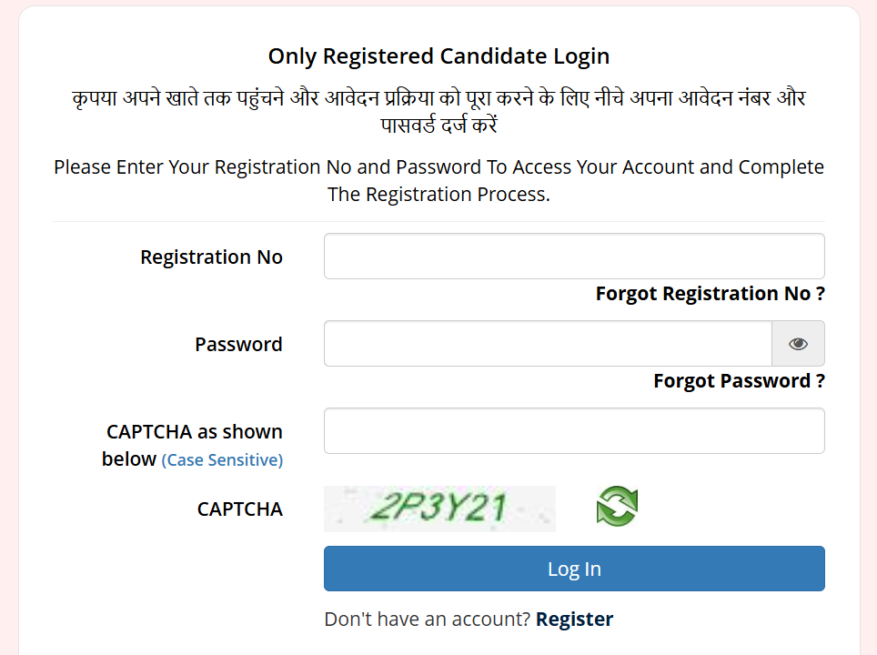 - A new login page opens, where you have to enter your Registration number and password (as per the admission certificate).