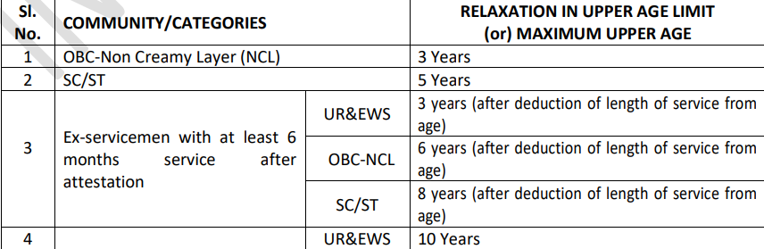 इस भर्ती मे SC, ST, OBC, PWD, Ex-Servicemen, महिलाओं और अन्य आरक्षित वर्गों को सरकार के नियमों के अनुसार आयु में छूट मिलेगी।